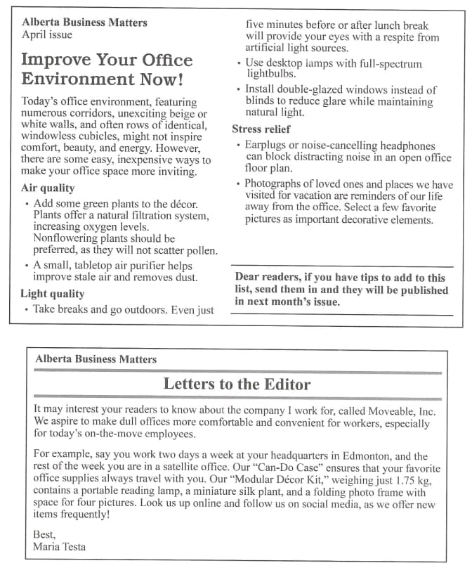 (D) She read the previous issue of Alberta Business Matters.